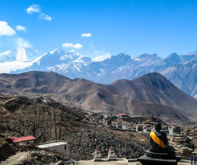 The morning starts at a relaxed pace, with an optional visit to the sacred Muktinath Temple. Nestled beneath towering peaks, the temple complex houses eternal flames and 108 water spouts, believed to purify the soul and offer salvation.