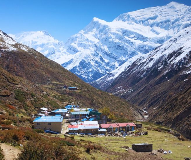 The trek rewards you with spectacular views of the Annapurna and Dhaulagiri mountain ranges, lush valleys, arid high-altitude deserts, glaciers, and the breathtaking Tilicho Lake and Peak.
