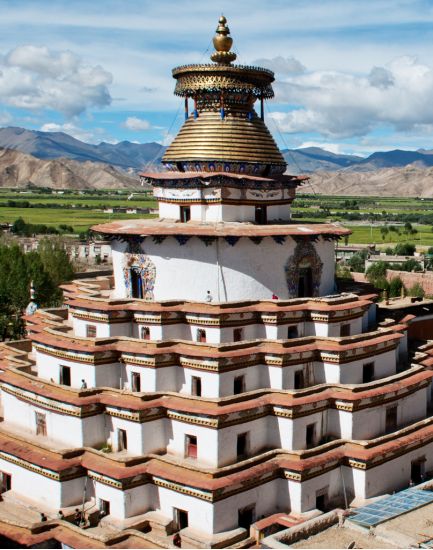 At Gyantse, make a visit to the Pelkor Monastery and the multi-tiered Gyantse Kumbum, with views of the Gyantse Fortress above the town.