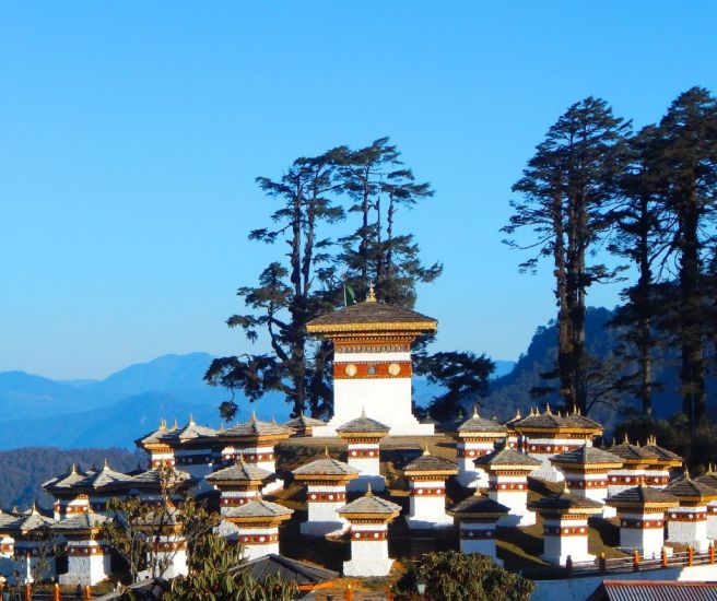 After breakfast, drive from Thimphu to Punakha, the former capital of Bhutan, renowned for its stunning landscapes and architectural wonders. Along the way, stop at the Dochula Pass (3,100 meters), where you can enjoy panoramic views of the Himalayan mountain range, particularly on clear days. Visit the Dochula Druk Wangyal Lhakhang, a beautiful temple surrounded by 108 chortens, dedicated to the Bhutanese soldiers who lost their lives in a 2003 military conflict.
