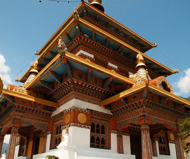 The journey continues with a scenic drive along winding valleys and forested hills until you reach Thimphu, Bhutan’s captivating capital, where age-old customs harmonize with a touch of modern vibrancy. Here, you’ll explore the grand Tashichho Dzong, a majestic fortress-monastery that serves as both the nation’s administrative heart and a thriving center of monastic life. Its golden spires and intricate woodwork stand as a testament to Bhutanese craftsmanship and devotion.