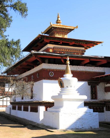 Morning: Hike to Khamsum Yulley Namgyal Chorten. A gentle uphill walk through rice fields and forest trails leads to this beautifully crafted temple, built to promote peace, harmony, and protection. Perched on a ridge above the valley, it offers a quiet setting with sweeping views, ideal for reflection and stillness. Prayer wheels nearby allow for mindful circumambulation.