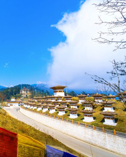 Morning: Drive from Thimphu to Punakha, passing through the scenic Dochula Pass, marked by 108 stupas and panoramic views of the eastern Himalayas on clear days. Enjoy a gentle forest walk through rhododendron and pine trails, offering a calm and refreshing start to the journey.