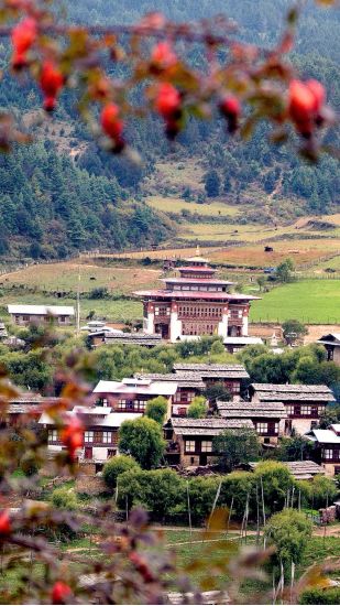 Beyond Trongsa, the road climbs gently through pine forests and rolling hills, passing small villages where traditional Bhutanese life continues as it has for centuries. The terrain gradually changes as you approach the higher-altitude valleys of Bumthang, with open meadows and scattered farmsteads creating a serene and inspiring landscape.