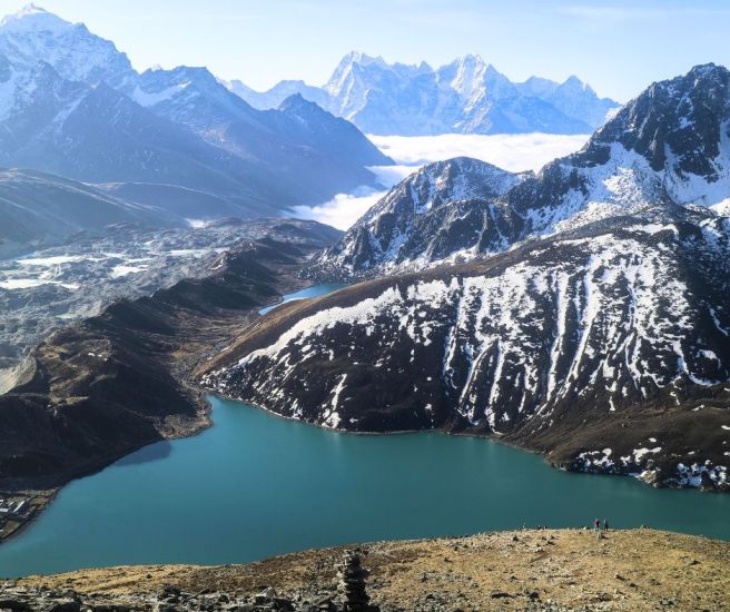 Today is dedicated to acclimatisation as we hike up to Gokyo Ri, a small peak above Gokyo village. The early morning climb offers spectacular panoramic views of the entire Khumbu region. As we ascend, the vistas grow even more stunning, with four of Nepal’s highest peaks—Cho Oyu, Everest, Lhotse, and Makalu—visible in all their glory.