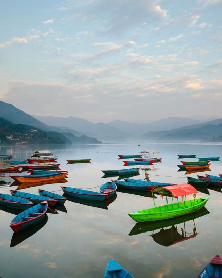 A short flight brings you to Pokhara. The change in setting is immediate, with open space and a slower pace by the lake. After checking into a lakeside retreat, take a quiet boat ride across Phewa Lake to visit the Tal Barahi Temple. The movement across water offers a natural pause and a sense of release after the city.