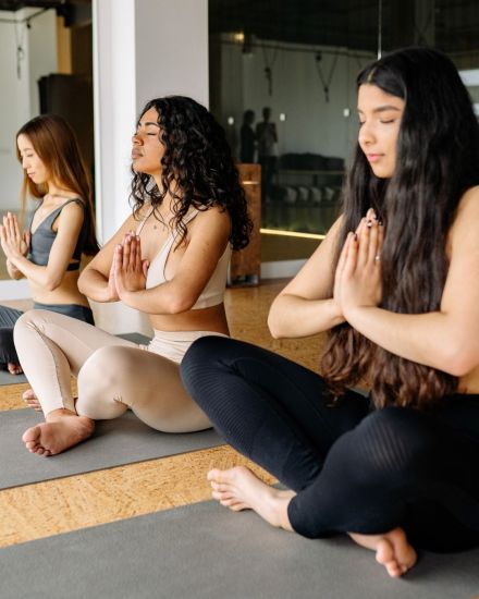 The day continues at a yoga and meditation retreat in Pokhara, set in a quiet natural environment. The program includes gentle yoga practice, seated meditation, and chanting of Green Tara mantras. The setting supports stillness, with space between practices for rest and quiet reflection.