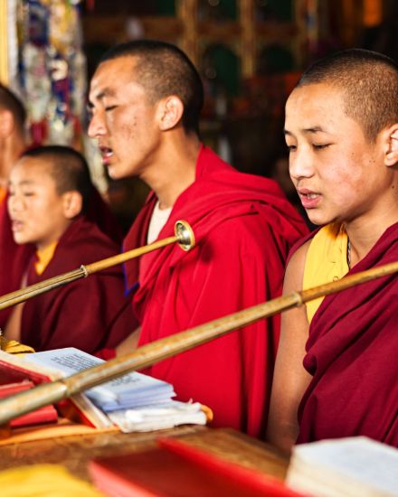 In the afternoon, continue to Tharlam Monastery. The monastery belongs to the Sakya tradition and functions as a center for study, ritual practice, and teaching. Like most Tibetan Buddhist monasteries, it includes Green Tara (Drolma) practice within its broader liturgical cycles of compassion and protection. A visit here includes a conversation or guided discussion with a resident teacher, subject to availability. The focus remains on practical Buddhist approaches to awareness, discipline, and working with the mind in daily life. Any reference to specific meditation practices depends on the teacher and the current monastic schedule.