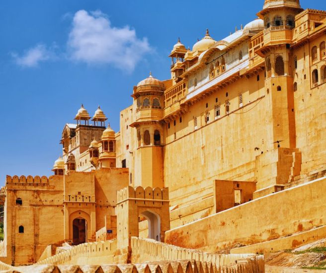 After breakfast, take a 4 hour drive to Jaipur. En route, visit Amer Fort and enjoy an elephant ride from the base to the top, following in the footsteps of the Maharajas. Explore Sheesh Mahal, Ganesh Pol, Shila Devi Temple, and Kesar Kyari Bagh at Amer Fort. Continue to Jaipur and check into your hotel.