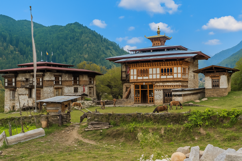 The trail follows the gentle flow of the Chamkhar Chu river, winding past verdant fields and local Bhutanese villages, where everyday rural life unfolds with quiet grace. Along the way, visit Thangbi Lhakhang, a charming temple nestled among meadows, before ascending gradually through open pastures and patches of pine and oak forest. The path leads to Ngang Yul village, home to the historic Ngang Lhakhang, or “Swan Temple,” renowned for its serene setting and rich local culture, making this a truly immersive hiking in Bhutan experience.