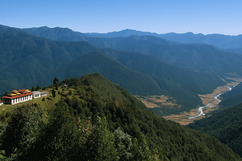 Begin your hike from behind the Chortens, following a well-marked trail that gradually ascends through pristine forest rich in biodiversity. The path winds through groves of pine, rhododendron, magnolia, and moss-covered trees, with vibrant wild orchids blooming in spring and summer. After about 1.5 to 2 hours of steady hiking, you reach Lungchutse Temple at 3,600 meters. Set on a forested ridge, the temple clearing offers sweeping 360-degree views of major Himalayan peaks and deep valleys stretching across Thimphu and Punakha. This peaceful spot is ideal for a short rest and picnic lunch.