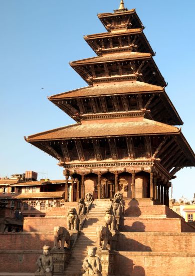 Fly from Pokhara to Kathmandu on a short scenic flight that offers aerial views of winding rivers, terraced hills, and the Himalayan foothills. This flight is one of the memorable experiences of the India Nepal Tour. After landing in Kathmandu, drive to Bhaktapur Durbar Square, a well-preserved medieval city known for its temples, historic courtyards, and long-standing pottery and woodcarving traditions. After exploring the square and its surrounding lanes, continue to your hotel in Kathmandu. The evening is free for rest or independent exploration.