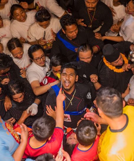The festival begins with the raising of the ceremonial Yosin (Indra pole) at Kathmandu Durbar Square, signaling the start of celebrations. Over the following days, the city comes alive with masked dances such as the fierce Lakhey, sacred Bhairav performances, and the appearance of Pulukisi, the symbolic elephant of Indra. Large masks of Akash Bhairav are displayed, where offerings, including traditional rice beer, are made.