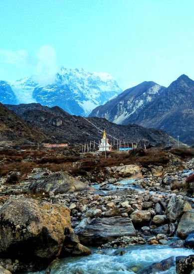 Continue ascending the valley, leaving the dense forest behind as the landscape opens to alpine meadows and grazing fields. Pass Ghoda Tabela, where yaks and dzopkyos graze, and enjoy stunning views of Langtang Lirung (7,227 m). Arrive at Langtang Village, a peaceful settlement rebuilt after the earthquake, serving as an important stop on the Langtang Valley Trek.