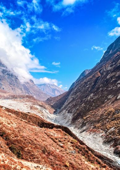 The Langtang landscape also includes sacred lakes such as Gosainkunda, which attracts thousands of pilgrims during Hindu and Buddhist festivals. Rivers, waterfalls, and glacial moraines add dynamic features to the valleys and enhance the natural beauty of the region.