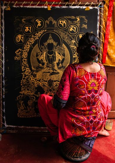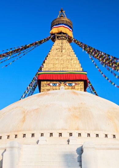 In the afternoon, head to Boudhanath Stupa, one of the largest Buddhist stupas in the world. Families can meet Thangka painters and learn how religious paintings are made. Children can join symbolic activities such as making small prayer flags, lighting butter lamps, and learning simple Buddhist rituals under the guidance of monks. This is a wonderful cultural experience for families traveling in Nepal.