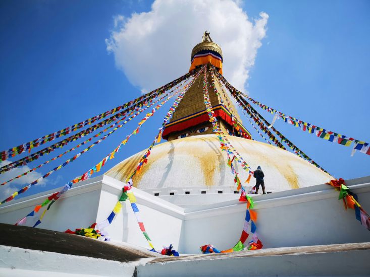 After breakfast, get into your car and begin this day of Nepal travel with the spiritual ambiance of Pashupatinath Temple, one of Nepal’s most revered Hindu shrines. As you wander through its intricate pagodas and sacred pathways, you’ll witness the age-old rituals that take place along the banks of the Bagmati River. Nearby, Boudhanath Stupa beckons with its colossal mandala and vibrant atmosphere, where you can observe monks in prayer and the faithful circumambulating the stupa, each step filled with devotion.