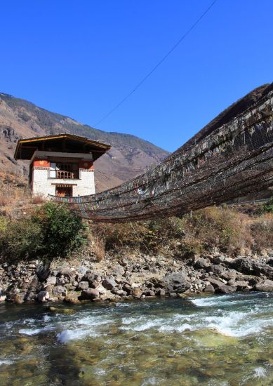 En route, stop at Tachogang Lhakhang Bridge, a 15th-century iron suspension bridge adorned with colorful prayer flags. Built by the renowned Kagyu tantric master Tangtong Gyalpo, this bridge is an excellent example of Bhutanese engineering and spirituality. Take time to admire the structure, capture photos, and learn about its historical and cultural significance.