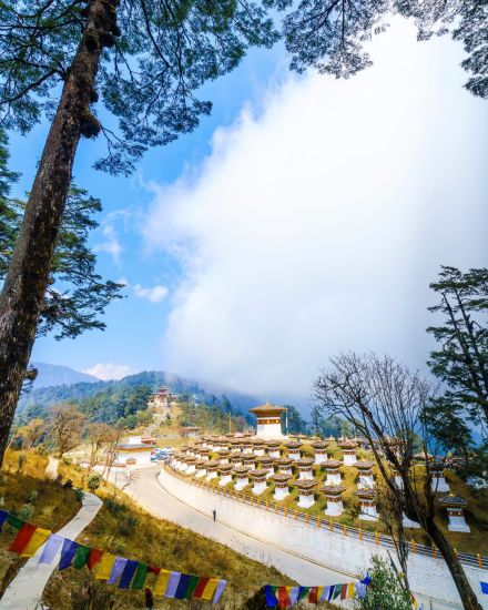 From Simtokha, continue toward Dochula Pass, a spectacular viewpoint at 3,100 meters. Here, 108 chortens stand in tribute to Bhutanese heroes, surrounded by panoramic views of the snow-capped Himalayas on clear days. Spend some time walking around the chortens, taking photos, and enjoying the crisp mountain air.