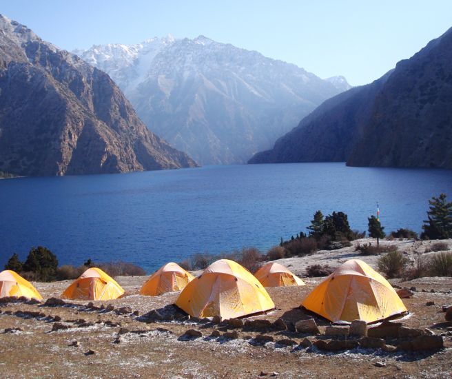 Camp overnight near Phoksundo Lake.